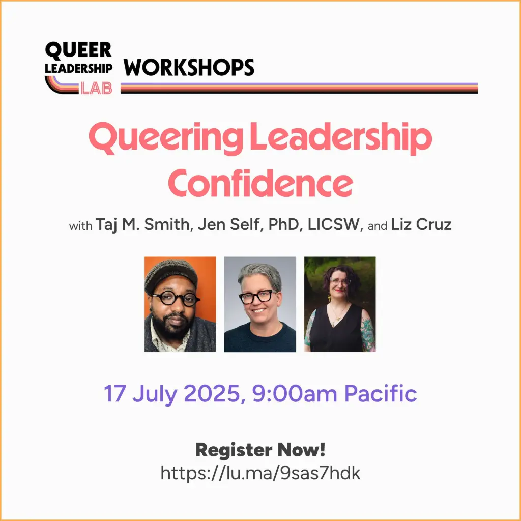 This is a chance to tap into collective wisdom, gain new perspectives, and leave with actionable ideas to support your leadership growth. Bring your challenges, your curiosity, and your queer brilliance—we can’t wait to work with you!